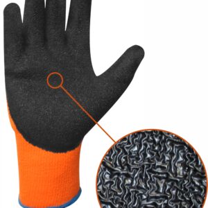 Rękawice ocieplane, wykonane z pętelkowej przędzy akrylowej, część dłoniowa i palce powlekane marszczonym lateksem